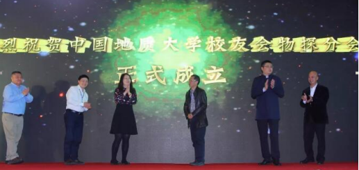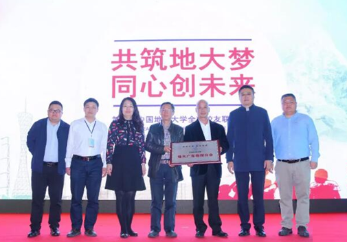 院长胡祥云、院党委副书记李周波、校友合作处处长徐岩、物探校友代表上台参加地大广东物探分会成立仪式,胡祥云院长为广东物探校友分会授牌。
