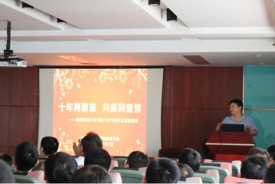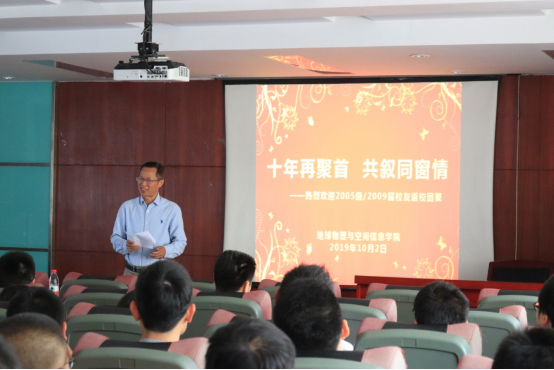 原分管学生工作的党委副书记、2005级辅导员、现任出版社党总支书记李国昌回忆起当年在一起的点点滴滴,并对校友提出了殷切的希望。